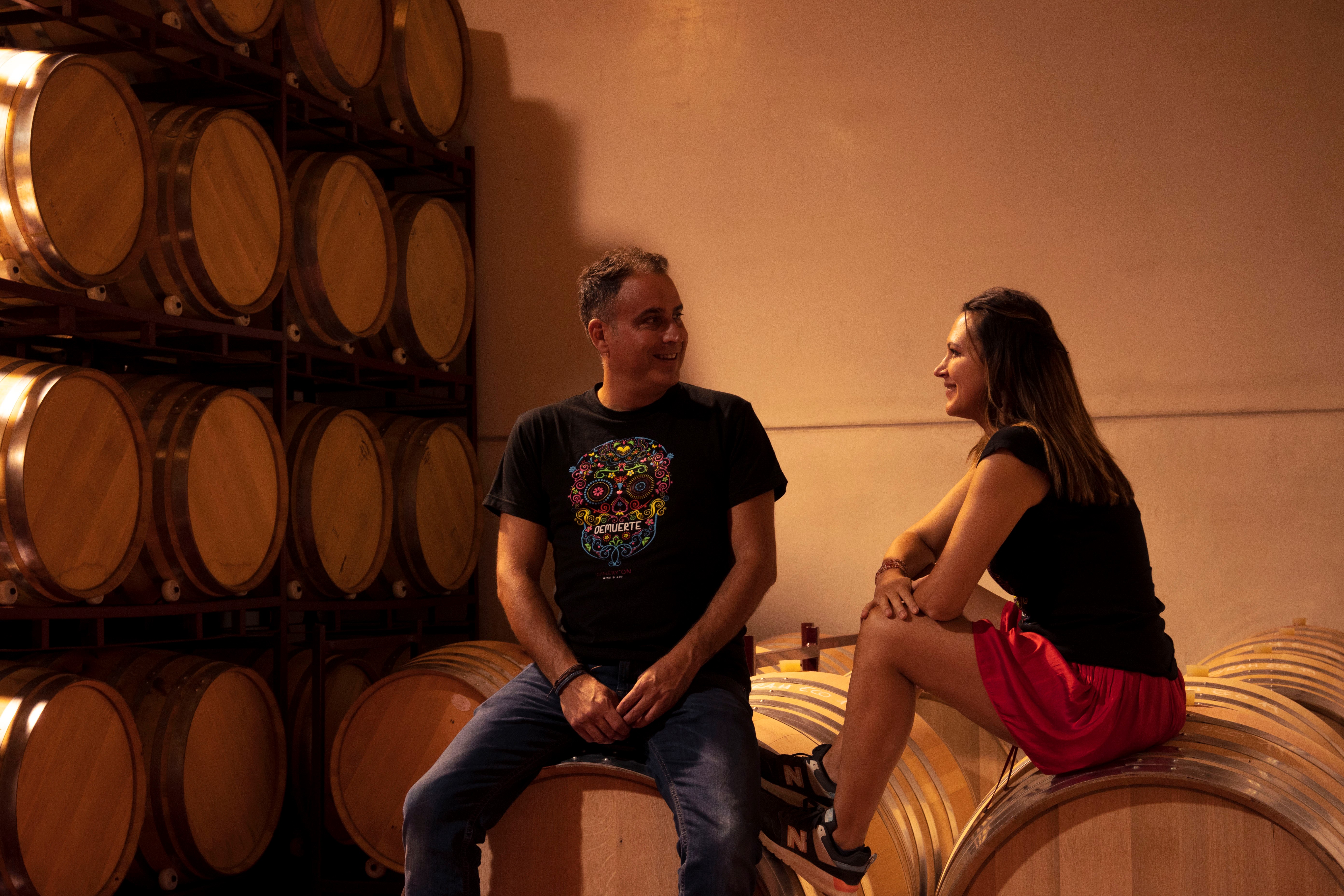 Im Südosten Spaniens kreieren Karel und Pablo mit Leidenschaft und Herzblut moderne, gehaltvolle und erstklassige Weine. Das junge dynamische Paar lässt Wein und Kunst – Vino y Arte - in einer raffinierten Kombination aufeinandertreffen. Während Karel die hippen und provokativen Designs entwirft, lebt Pablo seine Passion für die Weinmacherkunst mit Leib und Seele. Er bewirtschaftet 20 Hekar Rebland, welche vorwiegend mit Monastrell bepflanzt sind. Monastrell - nicht des Winzers bester Freund – aber Pablo meistert die Herausforderung mit Bravur und Liebe zum Detail und erzeugt Weine mit Raffinesse, Wärme, Tiefe und Modernität. Bei der Degustation eines neuen Weines schwärmte Karel, dass dieser Wein zum Sterben gut sei – und schon war der Name des Weins gefunden – DEMUERTE. Die zwei sind Freaks und extrem bodenständig zugleich. Sie leben zu 100% ihre Leidenschaft, grosse Weine vereint mit Kunst und einem Augenzwinkern.